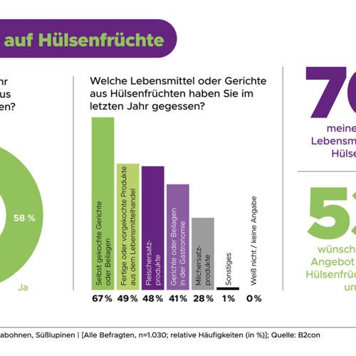 Dank ihrer Nährstoffzusammensetzung sind sie absolut empfehlenswert für eine ausgewogene Ernährung und ihr Eiweiß ist weltweit gefragt. In Sachen Nachhaltigkeit ist die Herkunft des Pflanzenproteins ein zentraler Faktor. Hier haben europäische Körnerleguminosen gegenüber Importen ganz klar die Nase vorn, denn sie punkten in Sachen regionaler Verfügbarkeit sowie kurzen Transportwegen und wirken sich als Bestandteil vielfältiger Fruchtfolgen zudem positiv auf Bodengesundheit und Biodiversität auf heimischen Äckern aus. Ackerbohnen, Süßlupinen, Körnererbsen und Sojabohnen aus Europa sind eine wertvolle Bereicherung in der Ernährung.